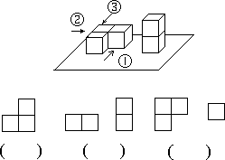 小明今天去新华书店买了许多文具,机灵狗也想看一看有什么.①它先站在地上看,可是桌子太高,于是②它又站到凳子上,还是看不清,最后③它爬上了桌子.下面几幅图是机灵狗这几次看到的,请你在( )里用①②③标出顺序.