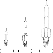 2005年10月12日,我国成功发射了“神舟六号”载人宇宙飞船,王叔叔在发射现场拍了三张照片,可不小心将顺序打乱了.你能按拍摄的先后顺序给它们标上序号吗?