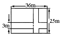 36米,宽25米,纵横方向各留了一条宽3米的小路,在四块空地处铺草坪,如图,如果草坪一平方米80元,那么修建广场买草坪至少花________元钱;小路上用边长是50厘米的地砖铺满,如果每块地砖6元,那么修建广场总共需要________元钱。![]()
