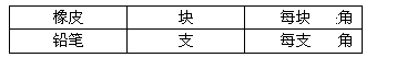 30支铅笔、40块橡皮和50本练习本.铅笔每支3角,橡皮每块2角,练习本每本4角.先根据下面的问题列表整理,在解答.