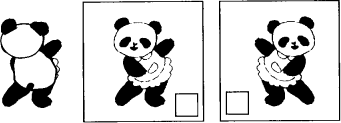 哪个是熊猫美美在镜子里看到的样子?在□里面“√”.