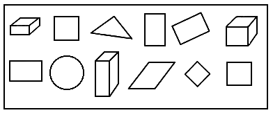 把下面图形中的长方形涂上红色,正方形涂上蓝色.