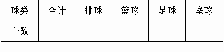 18个,篮球30个,足球24个,垒球12个,请把球的个数分别填入统计表中.![]()