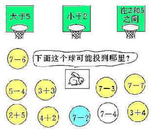 小白兔应该把球投到哪个篮筐里?