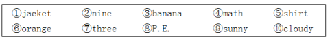 【题目】给下列单词分类,将单词序号填在横线上。(每小题1分,共5分)