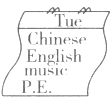 B.We have Chinese.English,P.E.and music on Tuesdays.