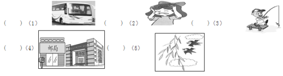 你将听到一个句子或一组对话,根据所听到的内容, 判断图片或句子是否相符, 相符的在相应的题号前的括号内打“√” , 不相符的打“×”。每小题将读两遍。(每小题1分,共10分)